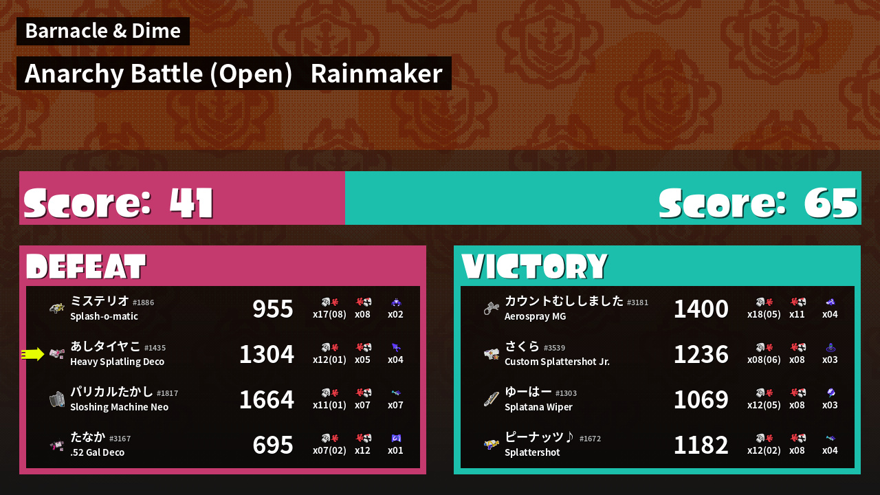 | Mode | Rainmaker - Anarchy Battle (Open) | ||