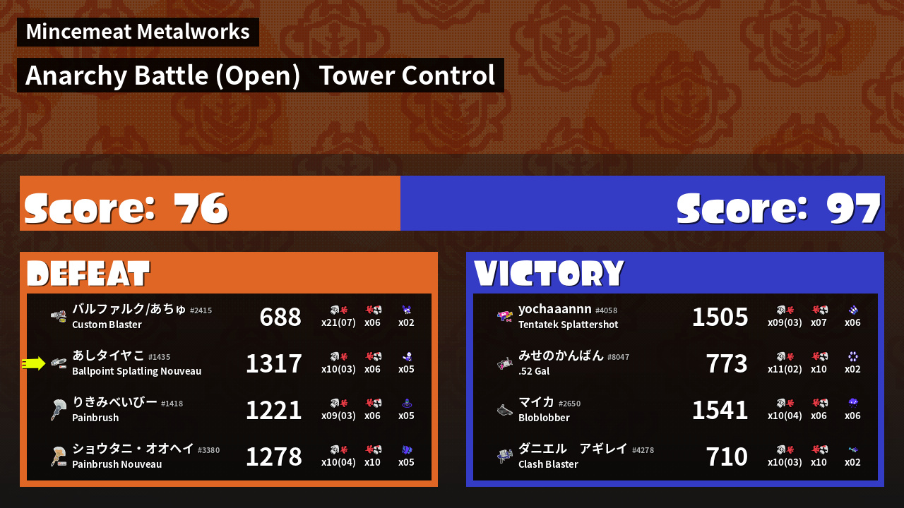 | Mode | Tower Control - Anarchy Battle (Open) | ||