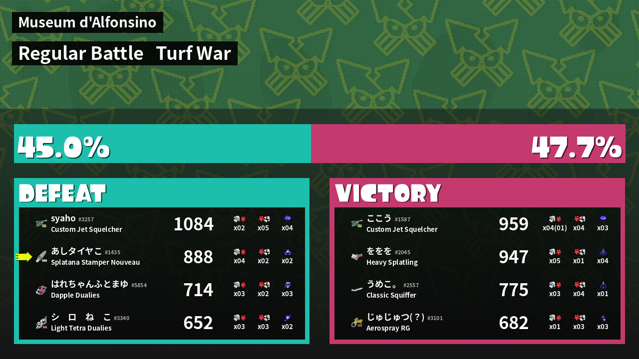 | Medals | #1 Overall Splatter #1 Popular Target #1 Home-Base Inker | ||
