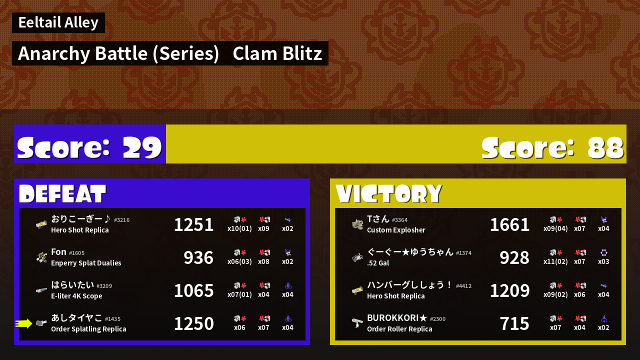 | Mode | Clam Blitz - Anarchy Battle (Series) | ||