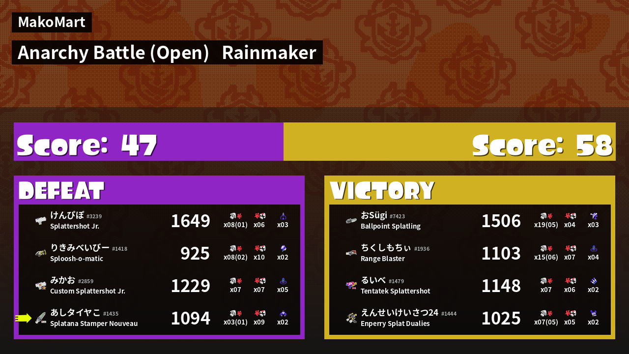 | Mode | Rainmaker - Anarchy Battle (Open) | ||
