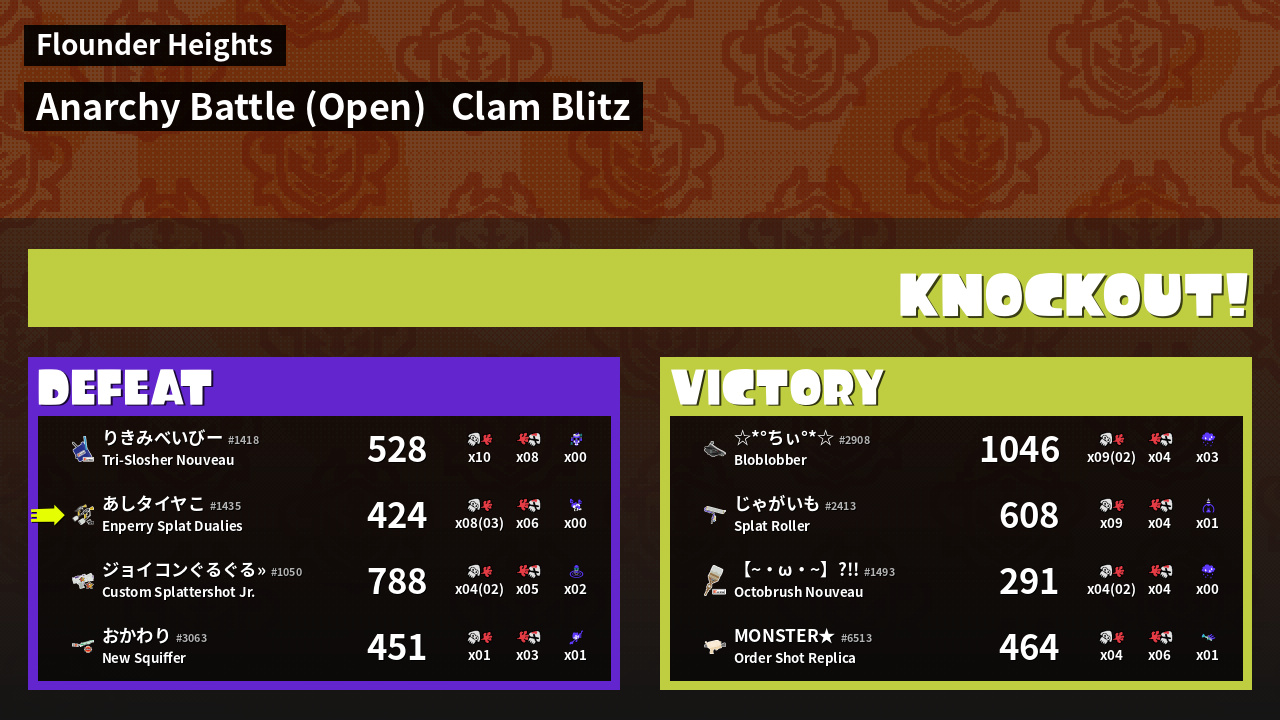 | Mode | Clam Blitz - Anarchy Battle (Open) | ||