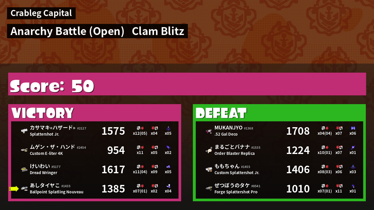 | Mode | Clam Blitz - Anarchy Battle (Open) | ||
