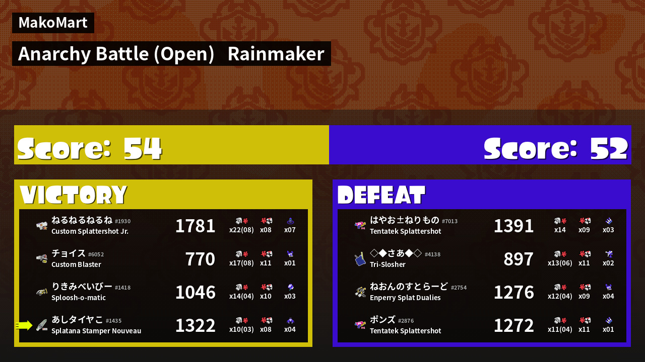 | Mode | Rainmaker - Anarchy Battle (Open) | ||