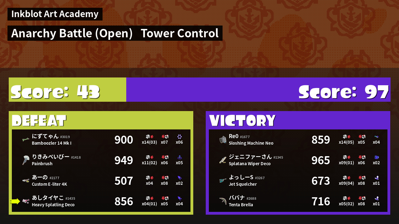 | Mode | Tower Control - Anarchy Battle (Open) | ||