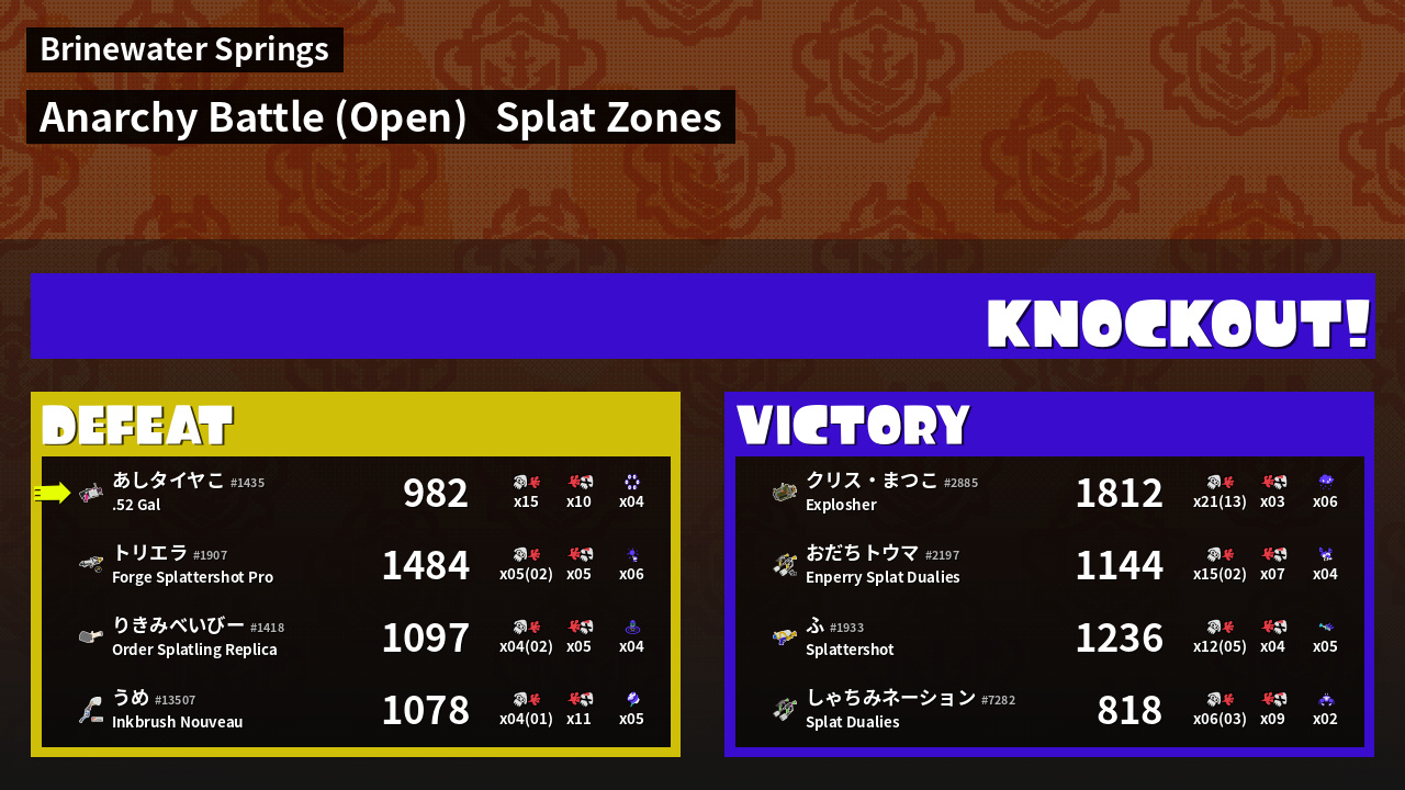 | Mode | Splat Zones - Anarchy Battle (Open) | ||