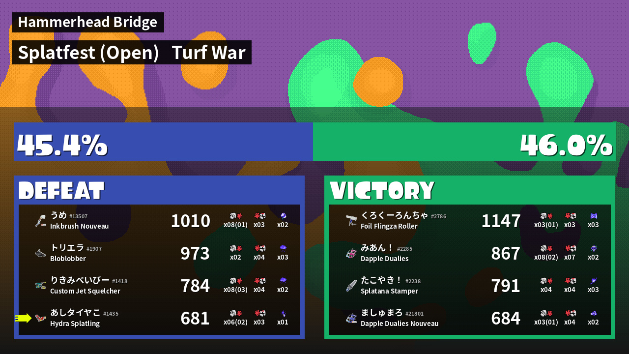 | Mode | Turf War - Splatfest (Open) | ||
