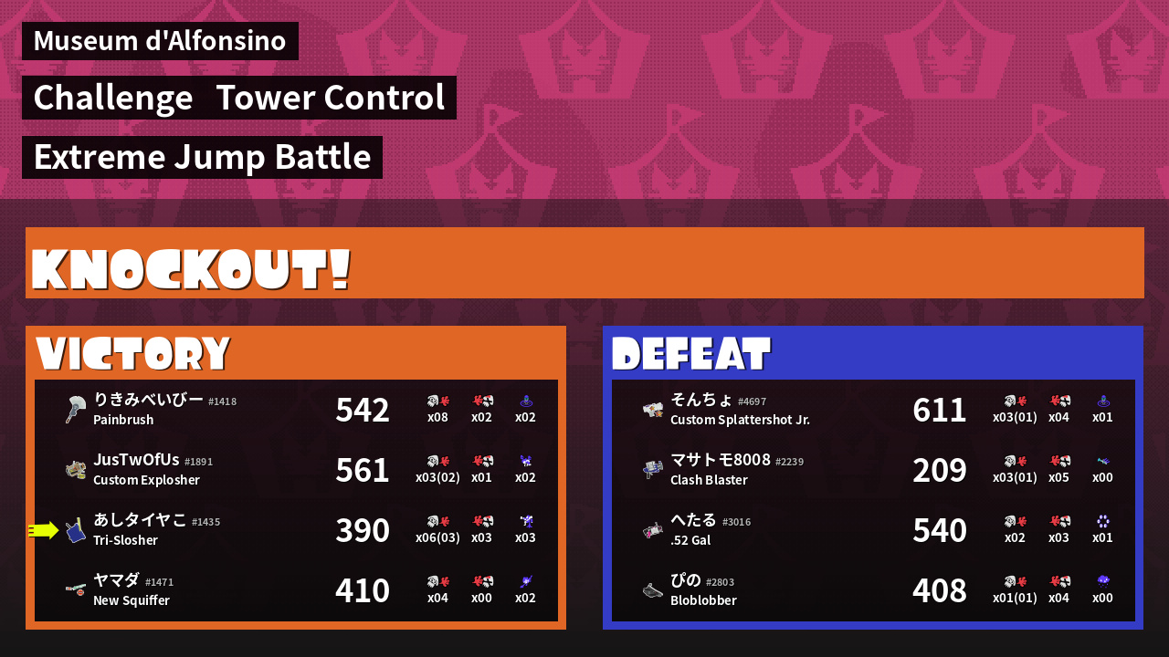 | Medals | #1 Splat Assister #1 Inkjet User #2 Overall Splatter | ||