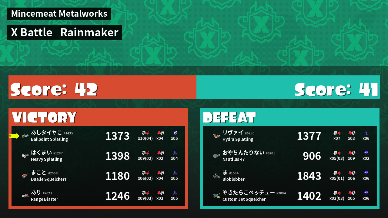 | Mode | Rainmaker - X Battle | ||
