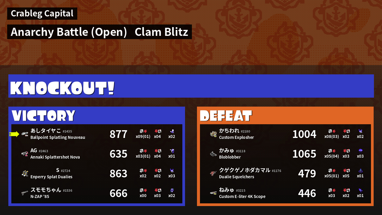 | Mode | Clam Blitz - Anarchy Battle (Open) | ||
