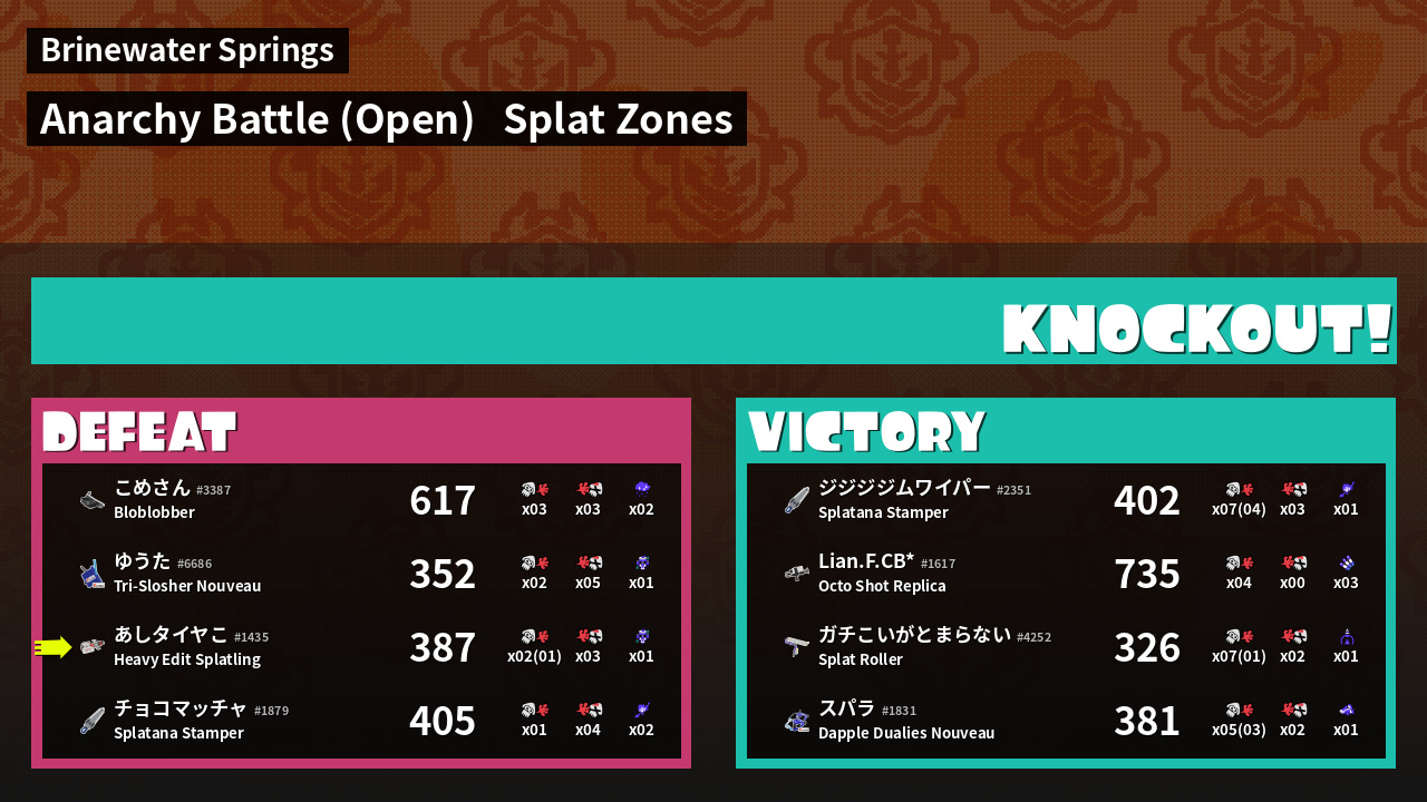 | Mode | Splat Zones - Anarchy Battle (Open) | ||