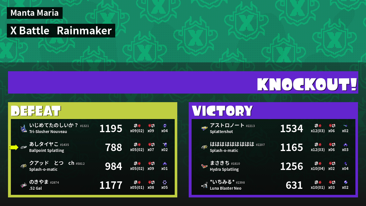 | Medals | #1 Super Jump Spot #1 Splat Assister #1 Rainmaker Stopper | ||