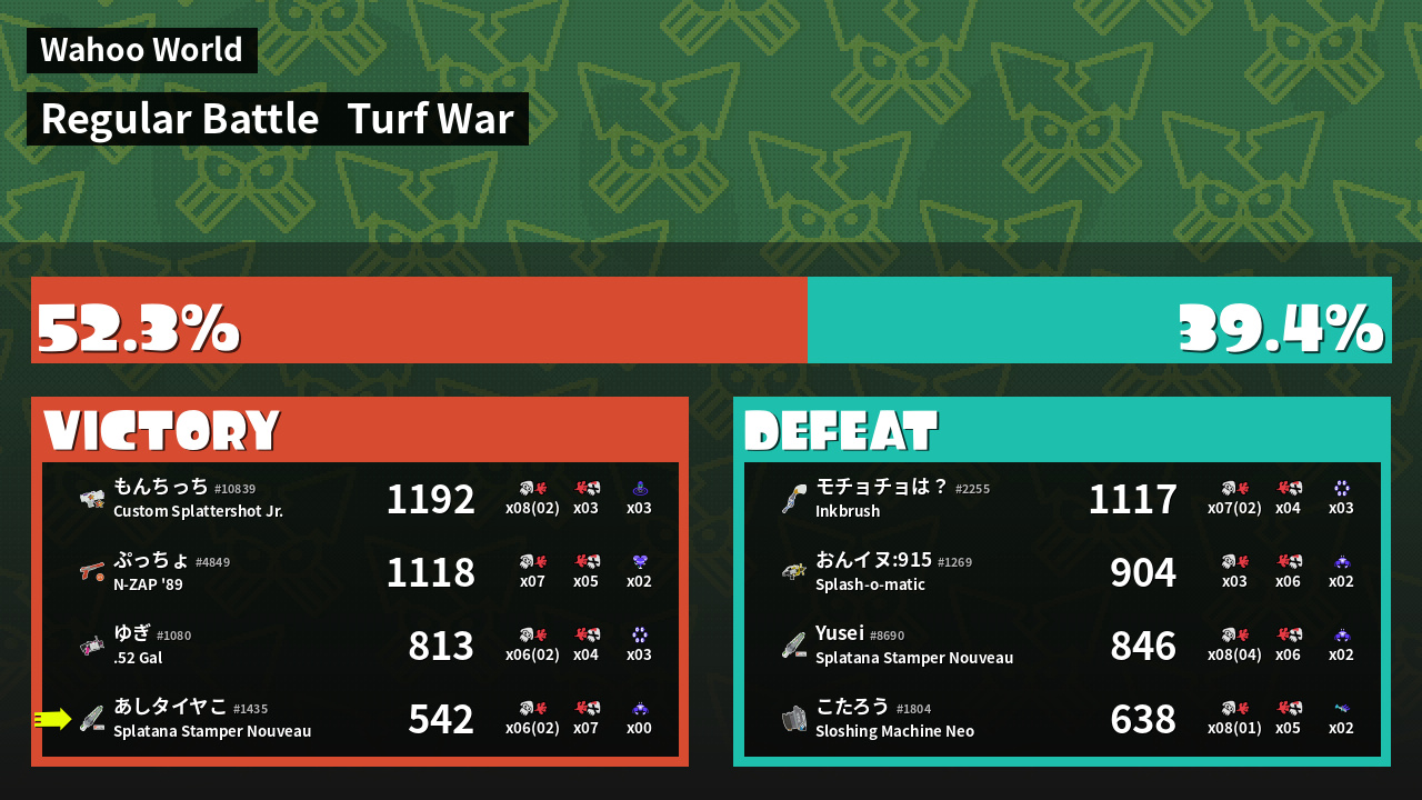 | Medals | #1 Super Jump Spot #1 Splat Assister #1 Ground Traveler | ||