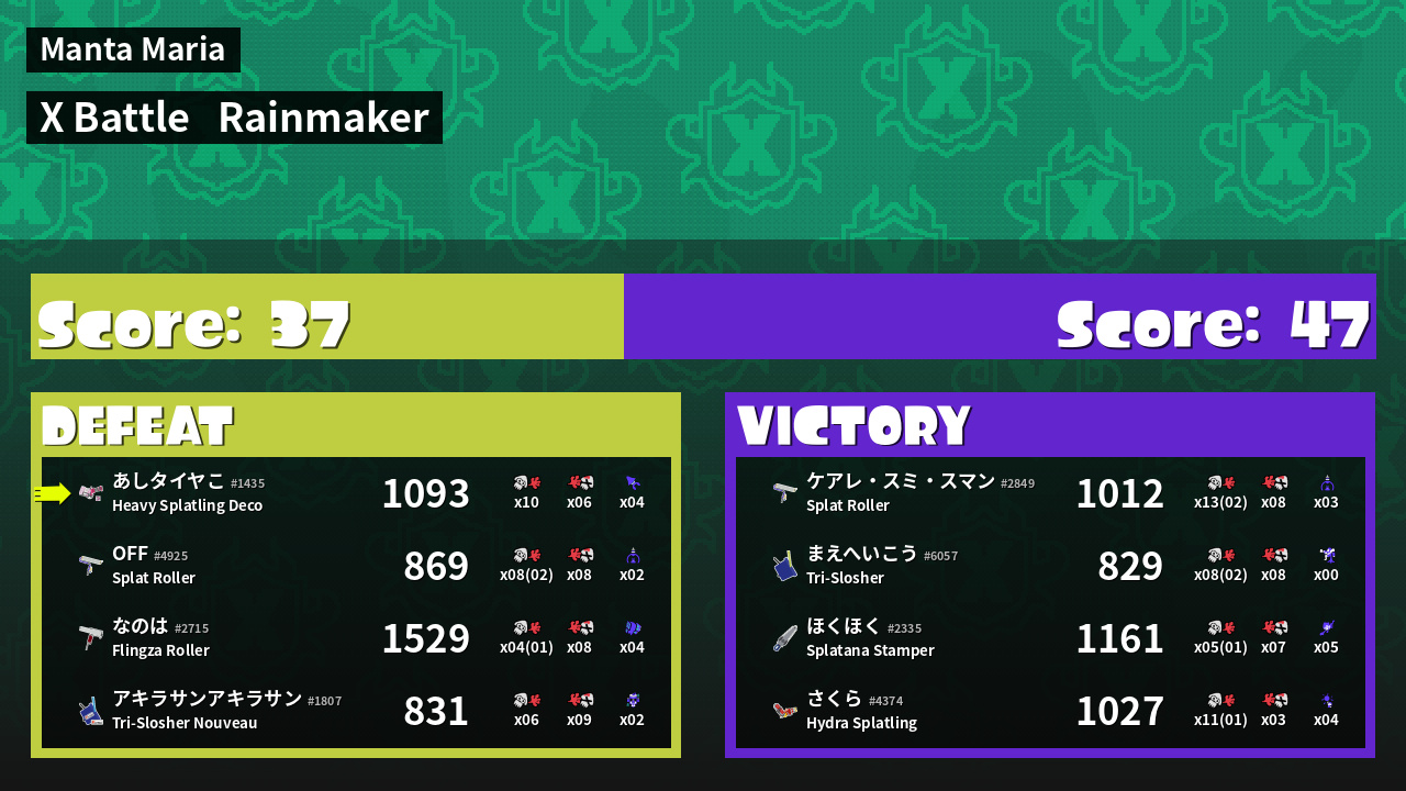 | Medals | #1 Overall Splatter #1 Super Jump Spot #1 Enemy Splatter | ||