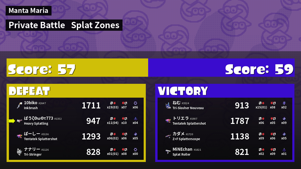 | Medals | #1 Splat Assister #1 Wave Breaker User #2 Overall Splatter | ||