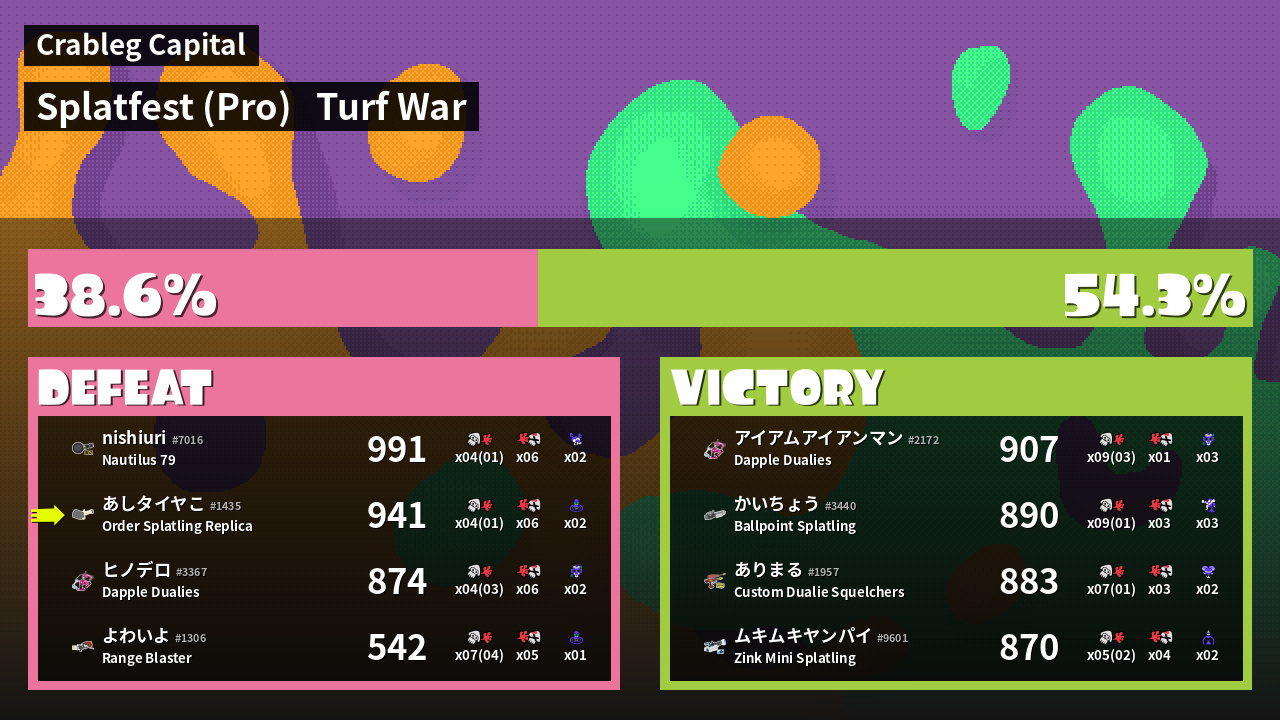 | Medals | #1 Enemy Splatter #1 Wave Breaker User #2 Overall Splatter | ||