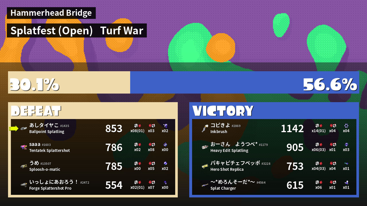 | Mode | Turf War - Splatfest (Open) | ||