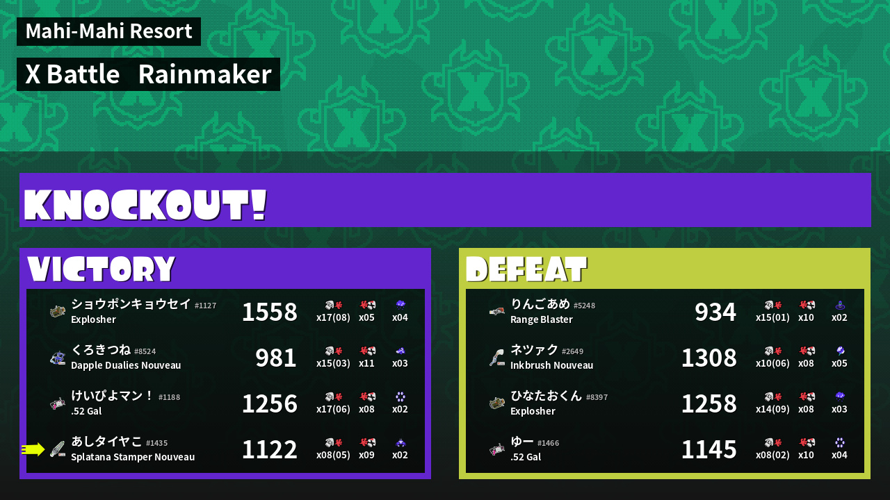 | Weapon | Splatana Stamper Nouveau ( Toxic Mist / Crab Tank) | ||