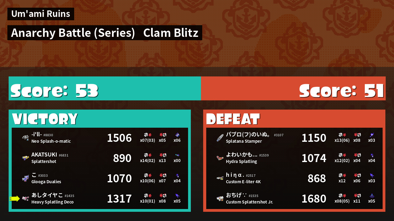 | Mode | Clam Blitz - Anarchy Battle (Series) | ||