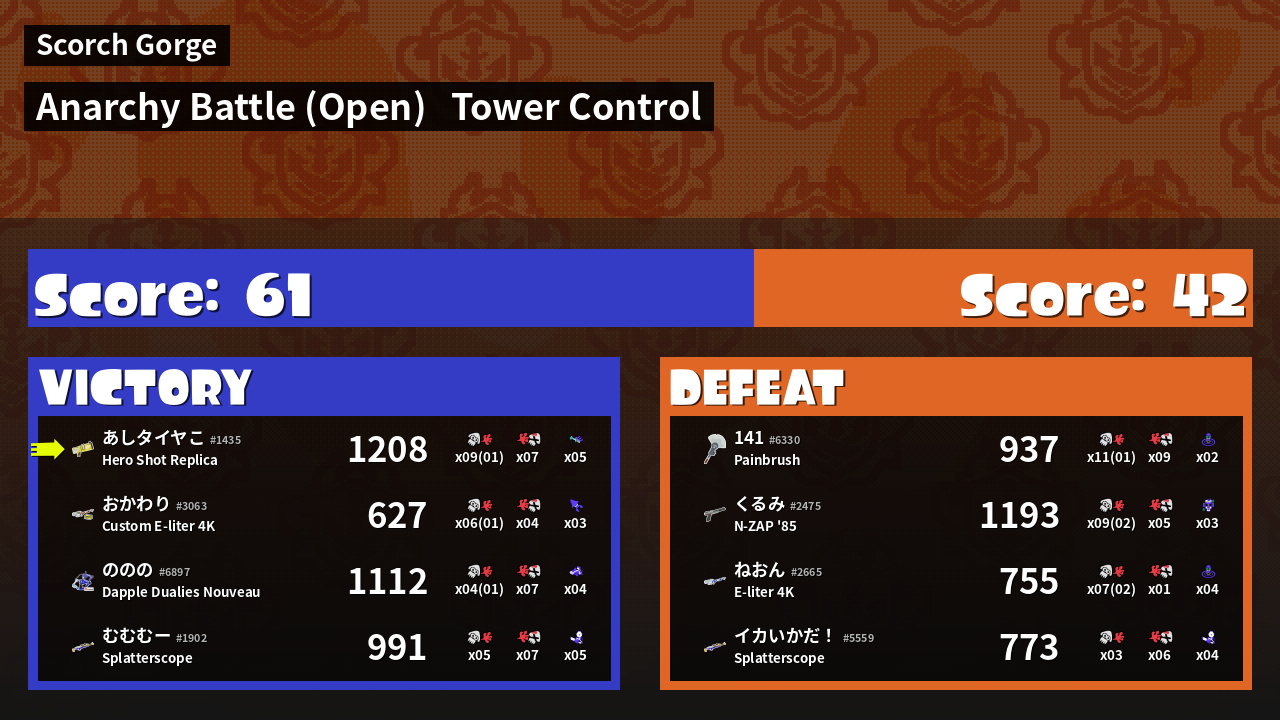 | Mode | Tower Control - Anarchy Battle (Open) | ||