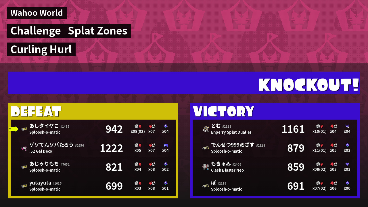 | Medals | #1 Overall Splatter #1 Enemy Splatter #1 Splat Assister | ||