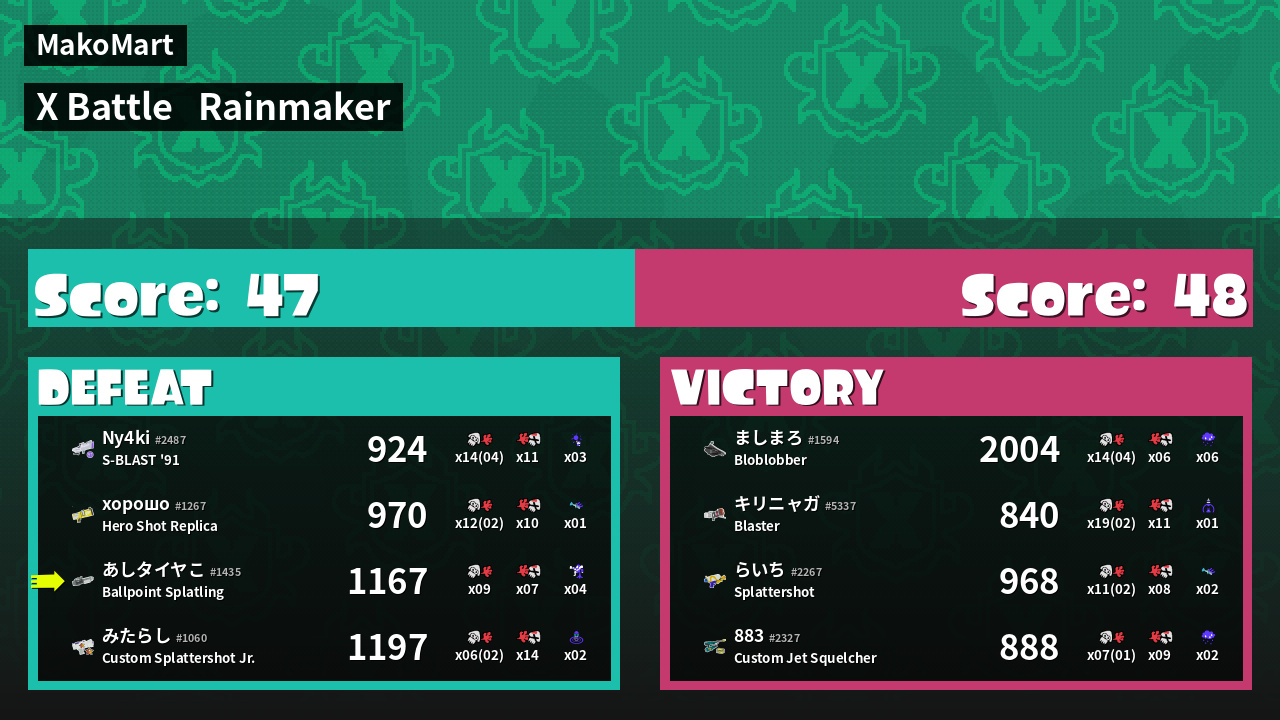 | Medals | #1 Super Jump Spot #1 Damage Taker #1 Inkjet User | ||