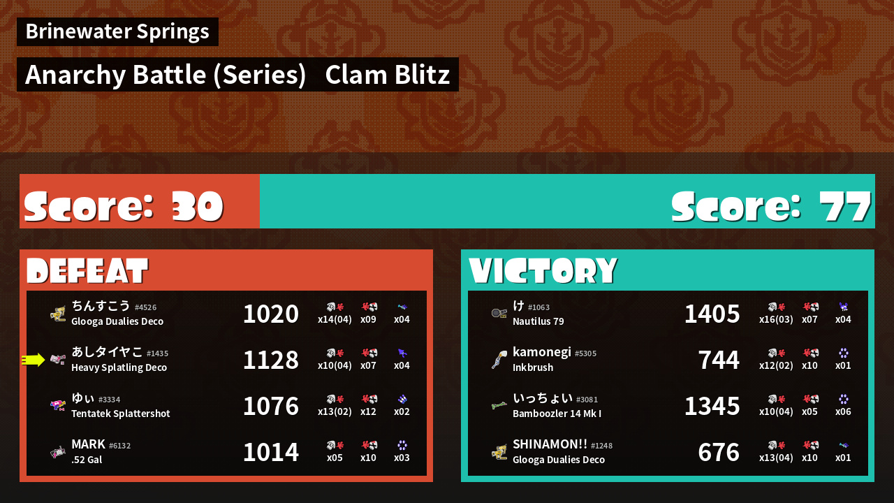 | Mode | Clam Blitz - Anarchy Battle (Series) | ||