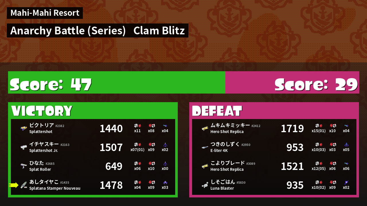 | Mode | Clam Blitz - Anarchy Battle (Series) | ||