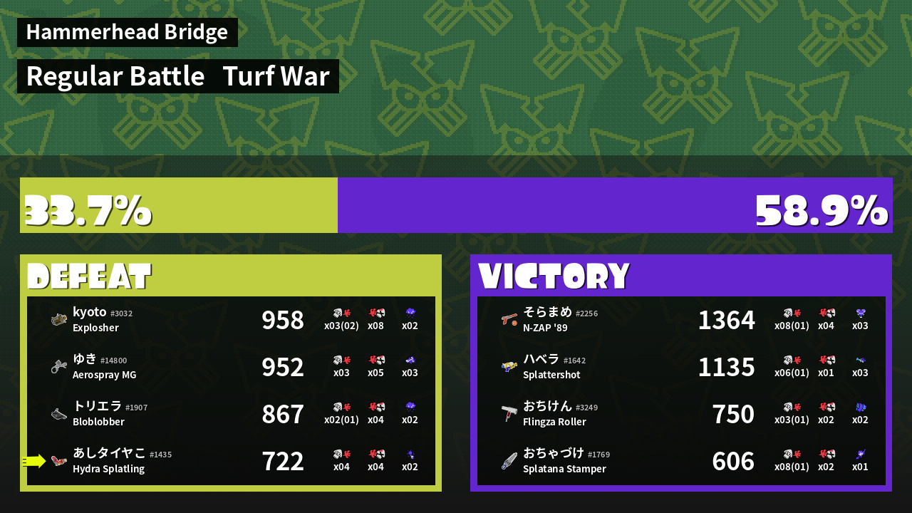 | Mode | Turf War - Regular Battle | ||