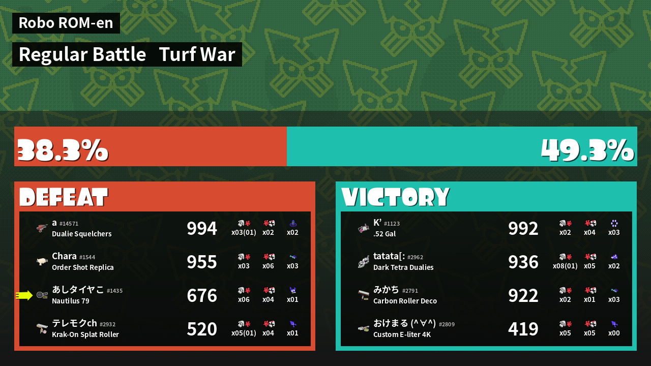 | Medals | #1 Overall Splatter #1 Enemy-Base Inker #1 Enemy Splatter | ||
