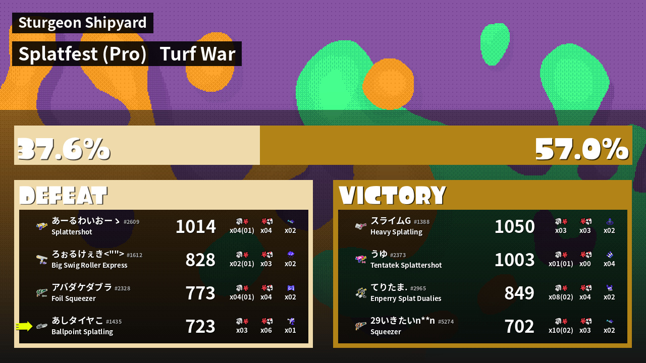 | Mode | Turf War - Splatfest (Pro) | ||