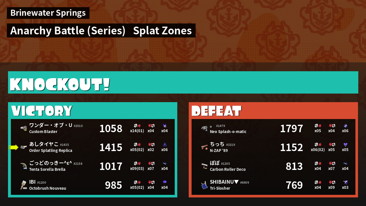 | Mode | Splat Zones - Anarchy Battle (Series) | ||