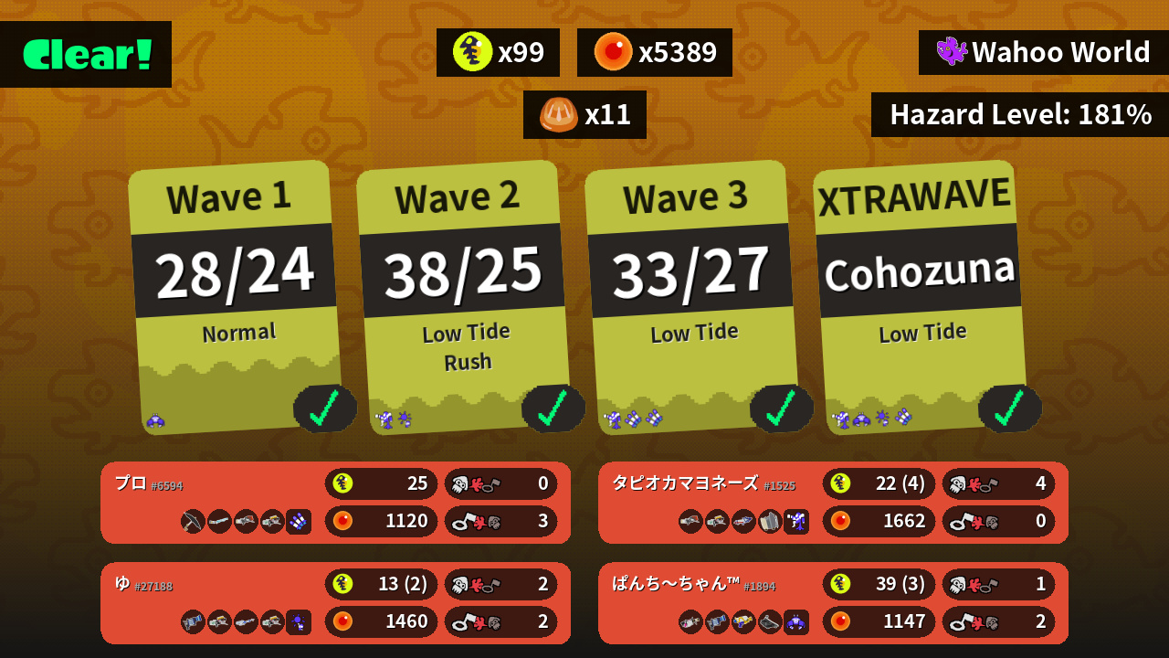 | Boss Salmonid | 18 | 12 | 21 | 18 |