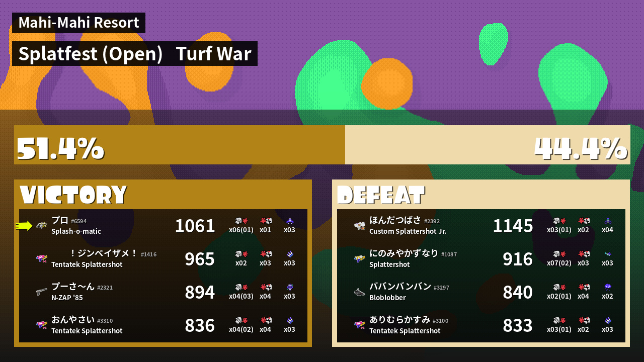 | Medals | #1 Overall Splatter #1 Turf Inker #1 Enemy-Base Inker | ||