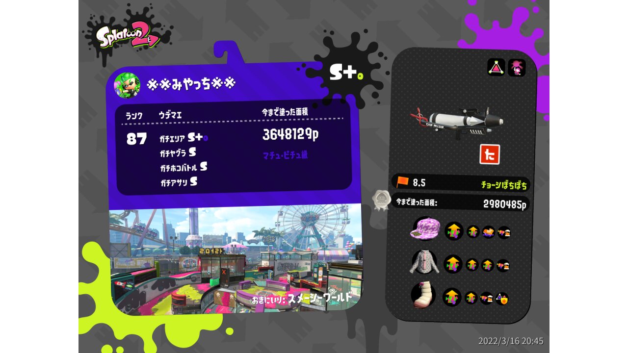 | Name | Weapon | Level | Rank | Inked | k+a/sp | k/d |