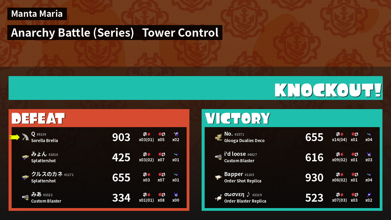 | Medals | #1 Overall Splatter #1 Turf Inker #1 Popular Target | ||