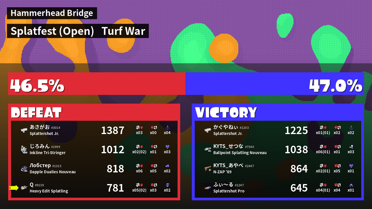 | Medals | #1 Splat Assister First Splat! #1 Tacticooler User | ||