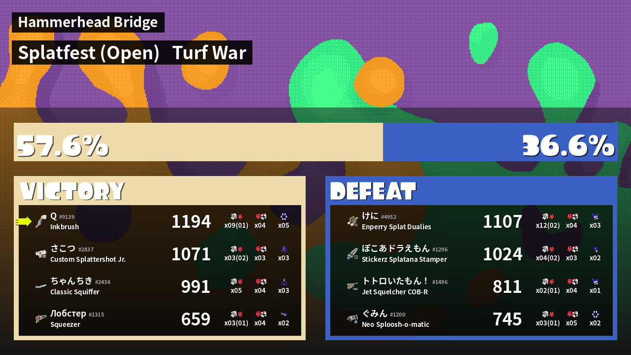 | Mode | Turf War - Splatfest (Open) | ||