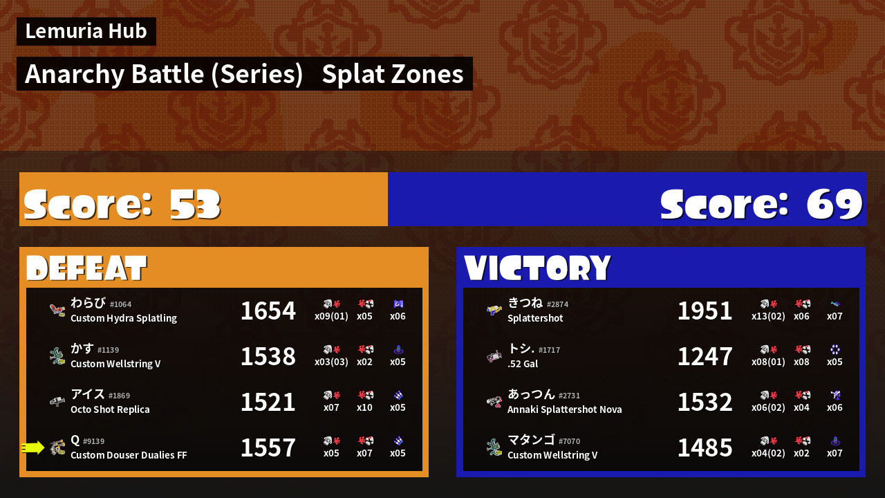 | Mode | Splat Zones - Anarchy Battle (Series) | ||