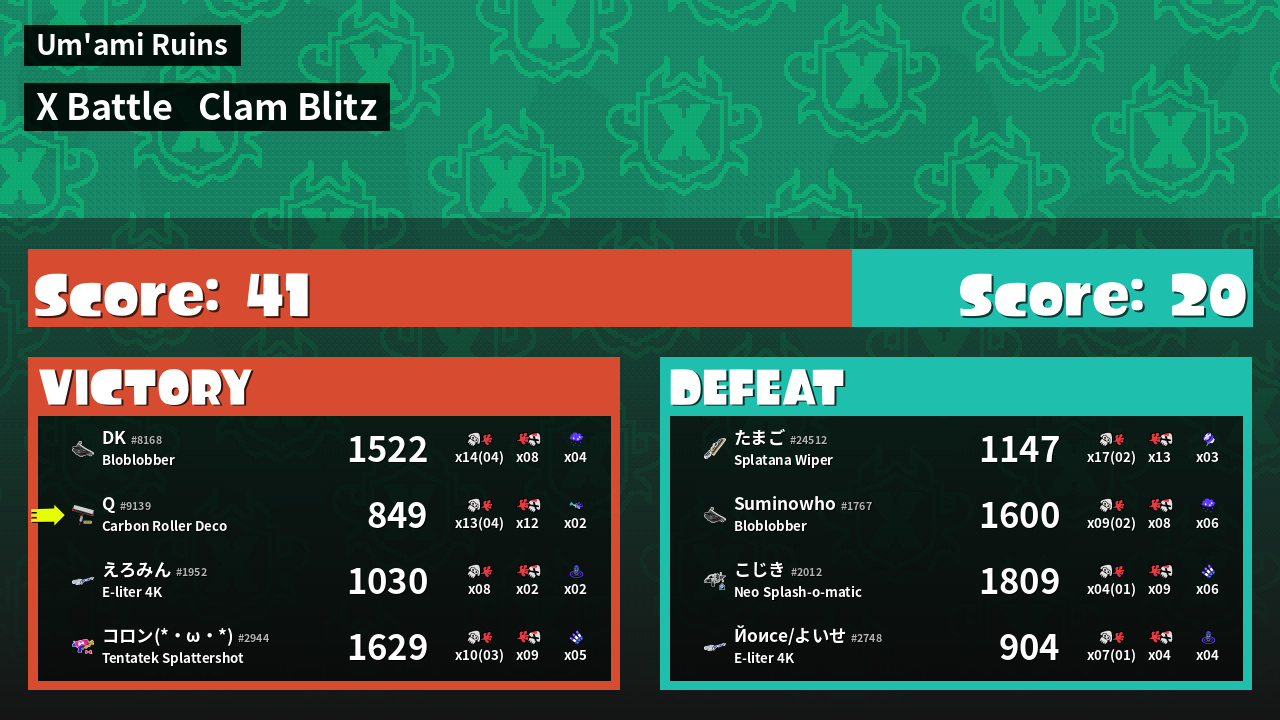 | Weapon | Carbon Roller Deco ( Burst Bomb / Trizooka) | ||