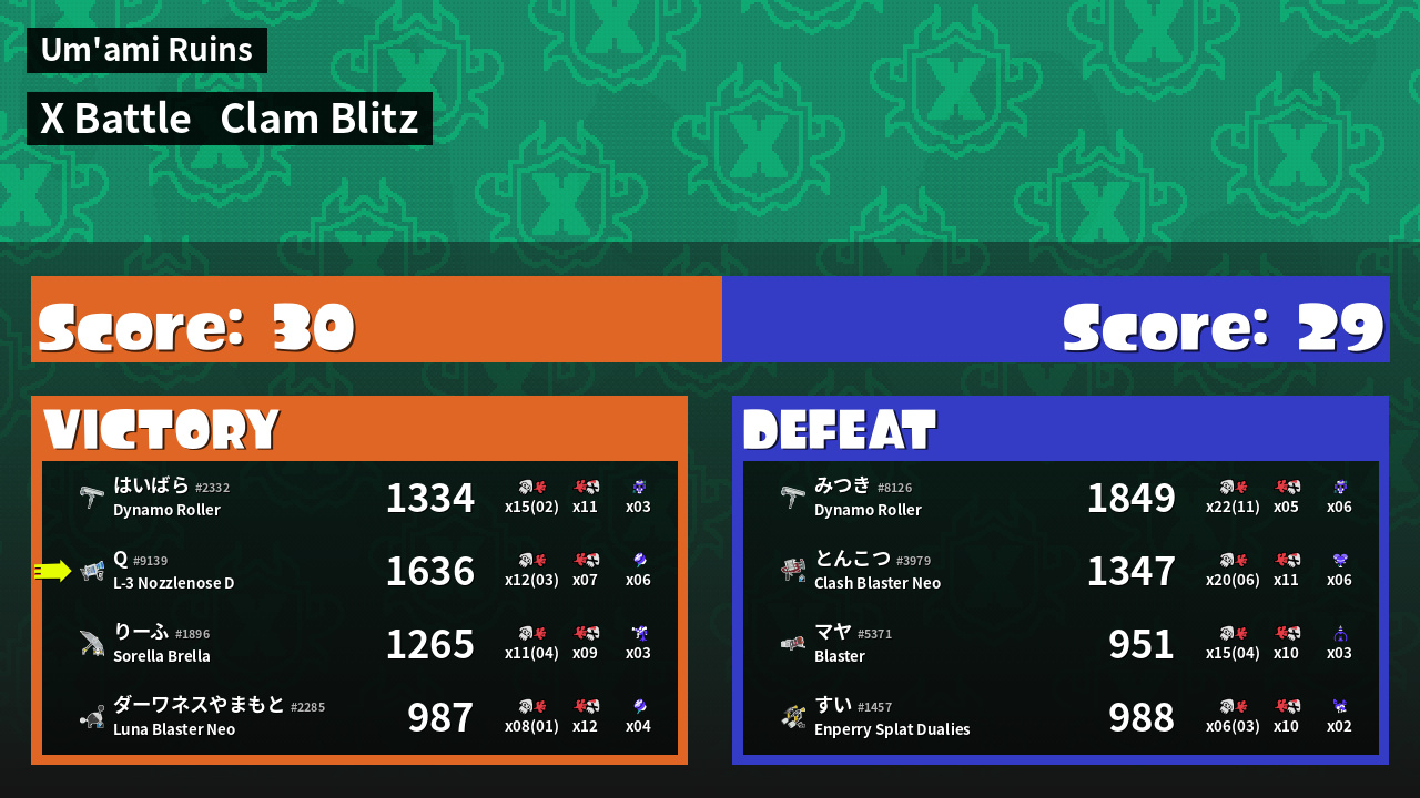 | Mode | Clam Blitz - X Battle | ||