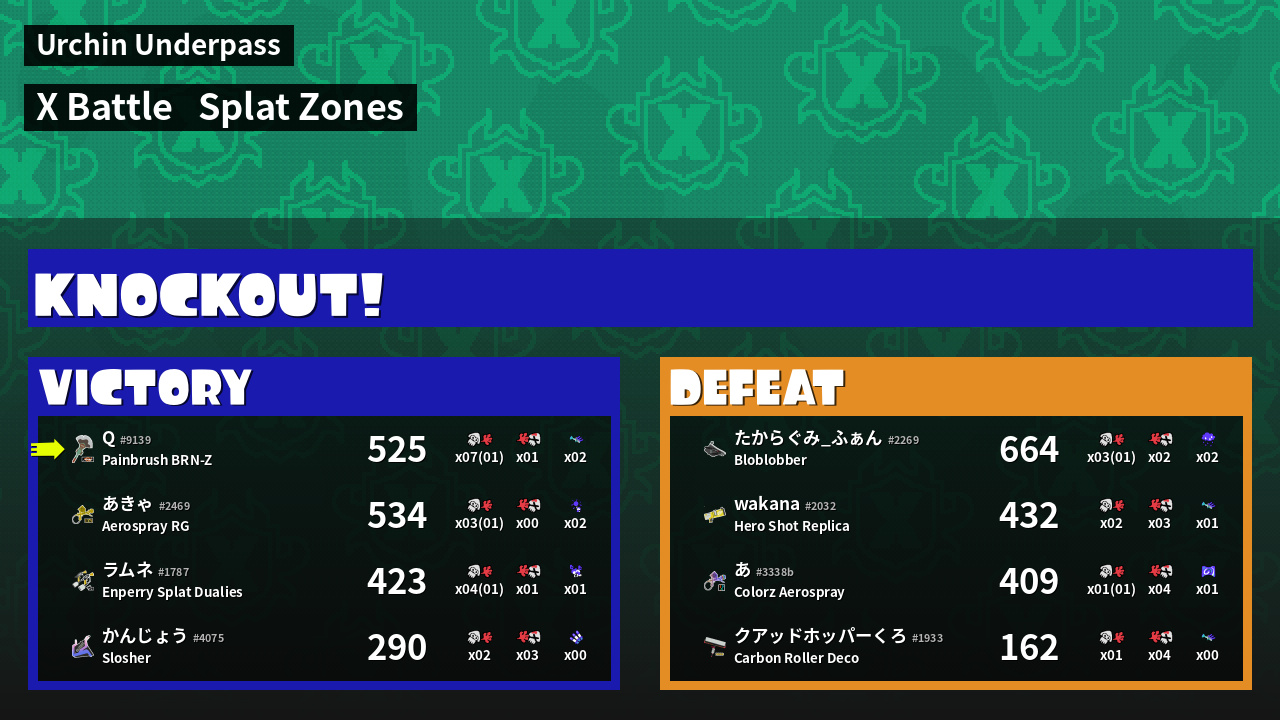 | Mode | Splat Zones - X Battle | ||