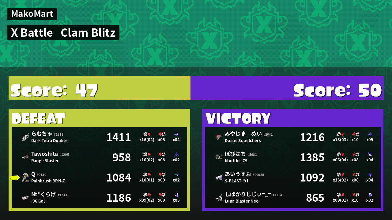 | Mode | Clam Blitz - X Battle | ||