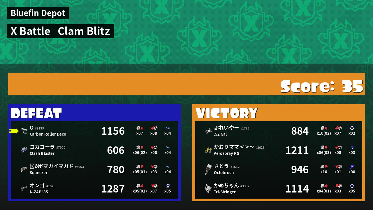 | Mode | Clam Blitz - X Battle | ||