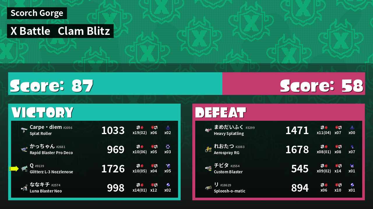 | Mode | Clam Blitz - X Battle | ||