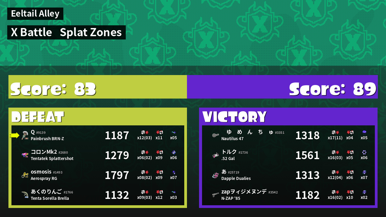 | Mode | Splat Zones - X Battle | ||