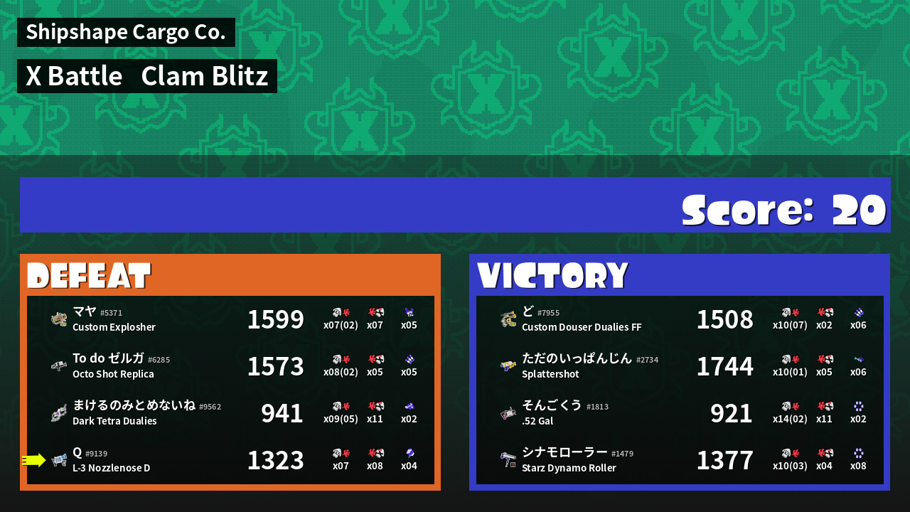 | Mode | Clam Blitz - X Battle | ||