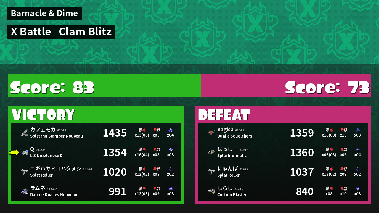 | Mode | Clam Blitz - X Battle | ||