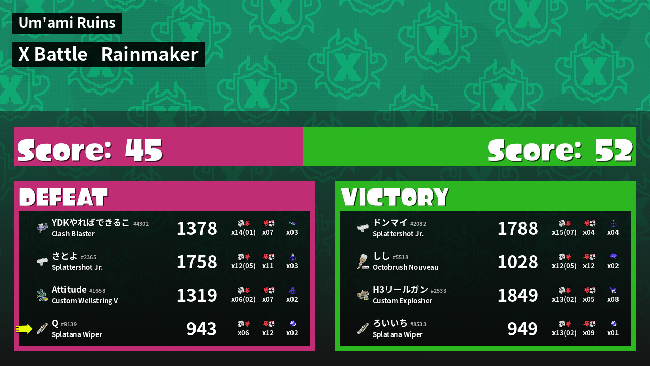 | Weapon | Splatana Wiper ( Torpedo / Ultra Stamp) | ||