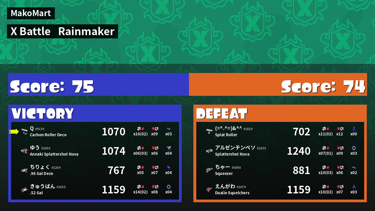 Results of Q☆550's Battle